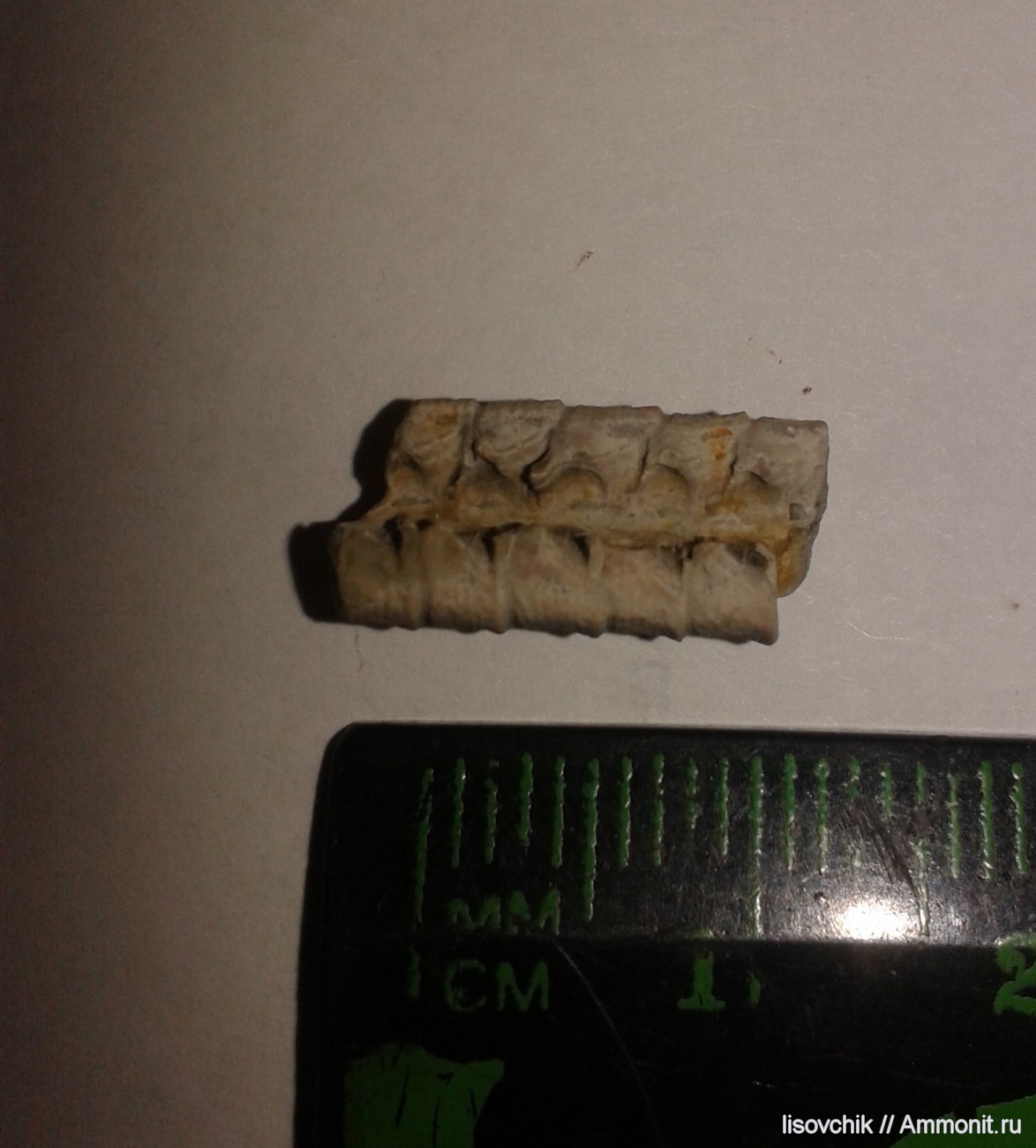Это фрагмент руки морской лилии. Похожие фрагменты уже мелькали тут на сайте из разных мест (Селижарово, Заборье). К сожалению пока не ясно что это за криноидеи такие. Есть предположения, но нужны новые, более полные находки. Так что поисковикам есть к чему стремиться!