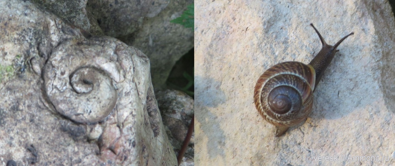 Ядро Bellerophon sp. и Fruticicola fruticum var.punctata, известняки деревни Ровное.