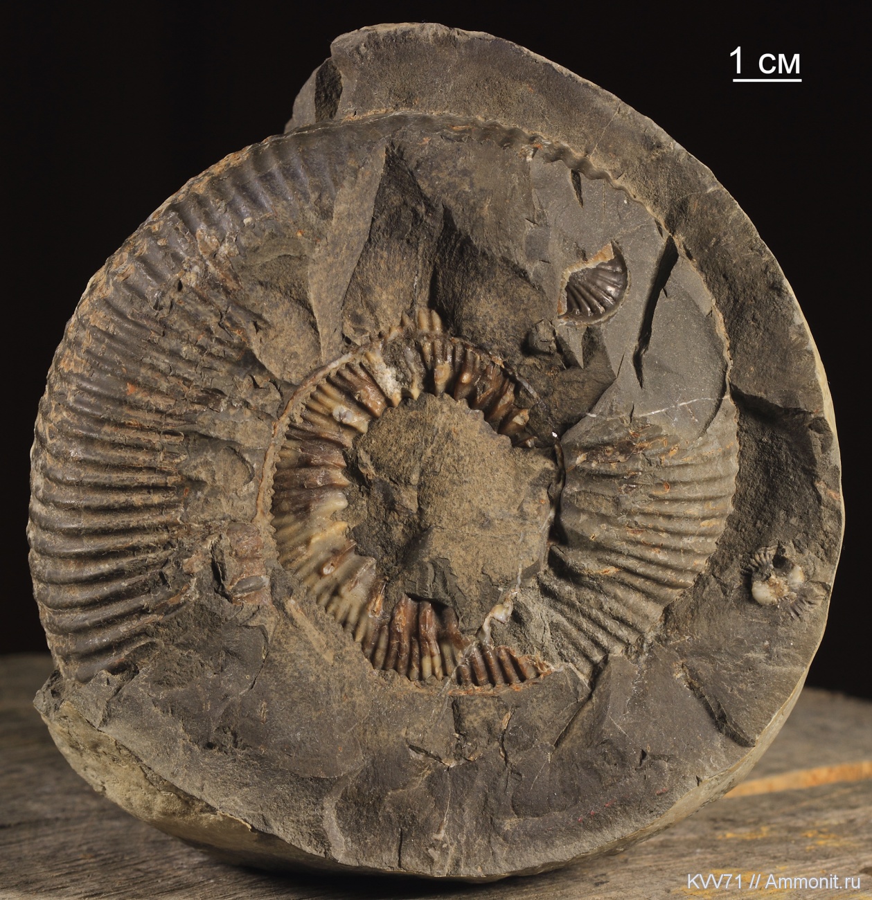 Stephanoceras sp. В основании жилой камеры оказалась мелкая двустворка. Не помню я находок двустворок там, как и брахиопод. Только аммониты, белемниты, наутилусы, брюхоногие и деревяшки.