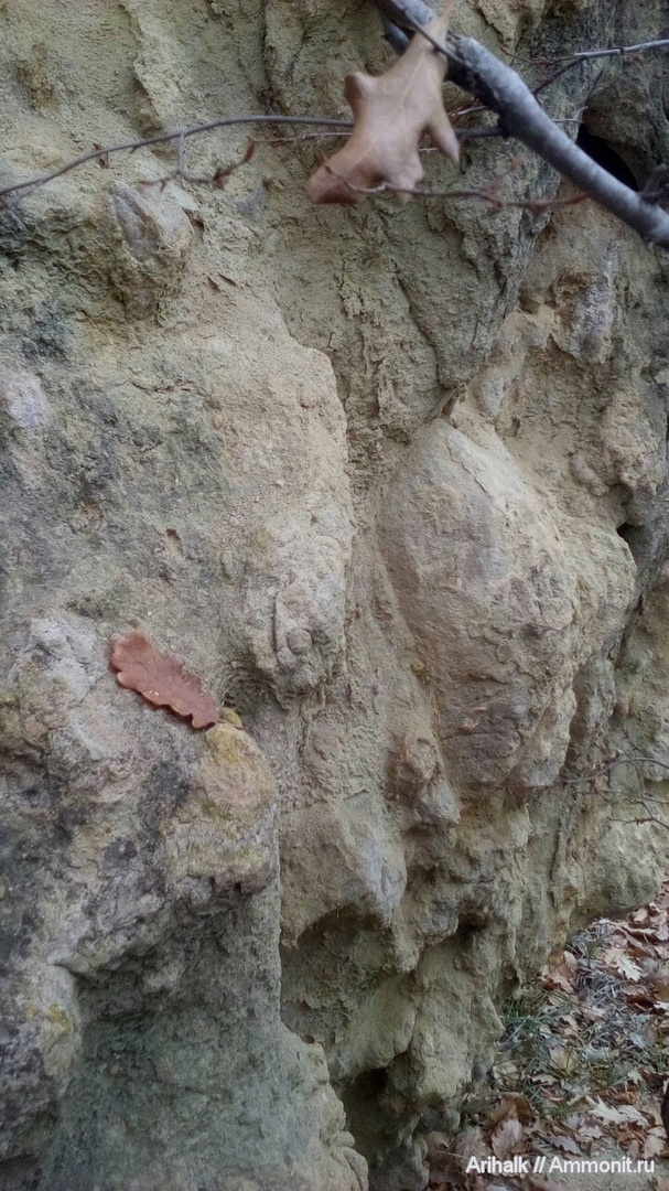 Похоже, что этот коренник, не только в обвальной зоне, но и сам обвалился когда-то, т.к. аммонит здесь лежит не горизонтально, как положено в кореннике, а вертикально. | ||||||
