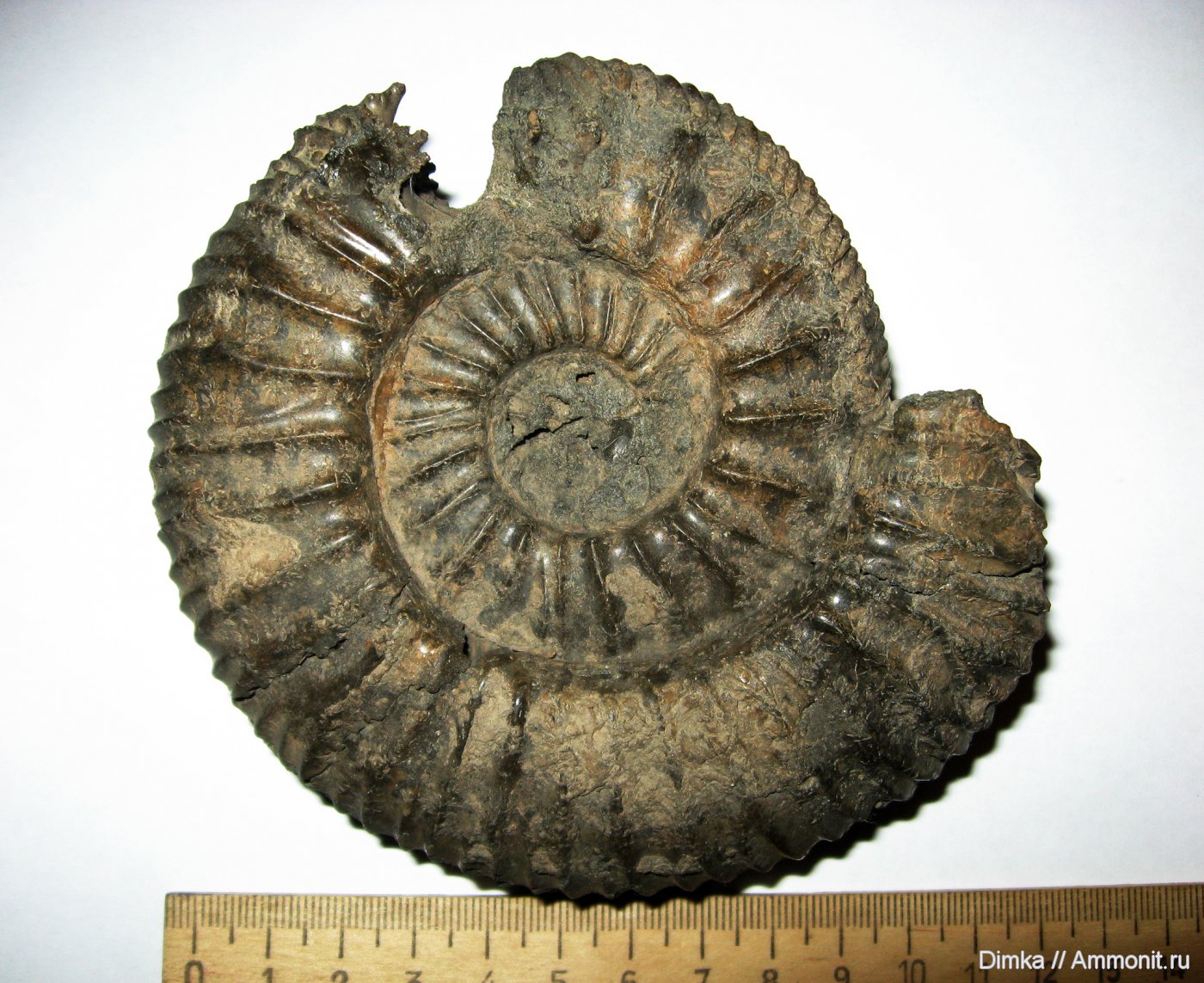 Одна из лучших в моей коллекции по сохранности раковин этого вида аммонитов из Москворечья. Обычно раковины такой величины редко сохраняются целиком.