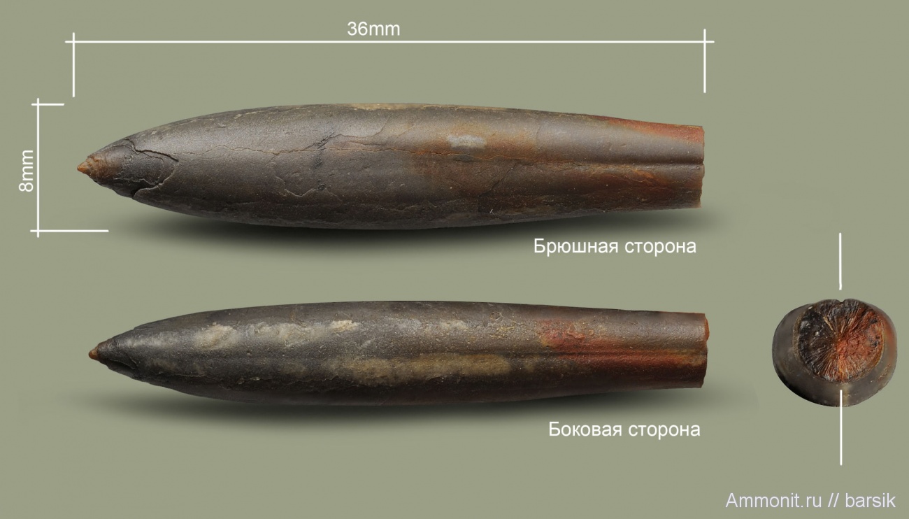Юрский ростр белемнопсеид (сем. Belemnopseidae), скорее всего, Hibolithes. Они появились в средней юре. По расположению слоев как раз подходит, потому что по берегам в этом районе байос и бат.