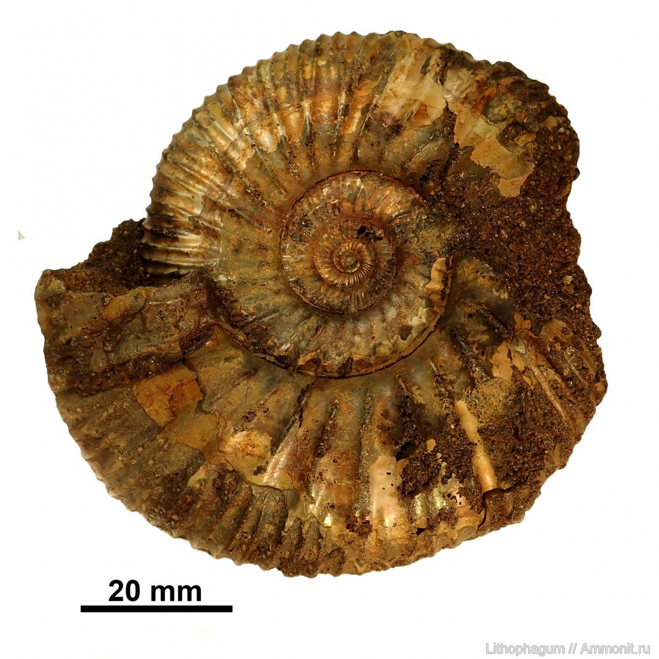 Из двух десятков найденных там аммонитов, действительно, этот пока единственный с целым пупком и остатками перламутра. | ||||||