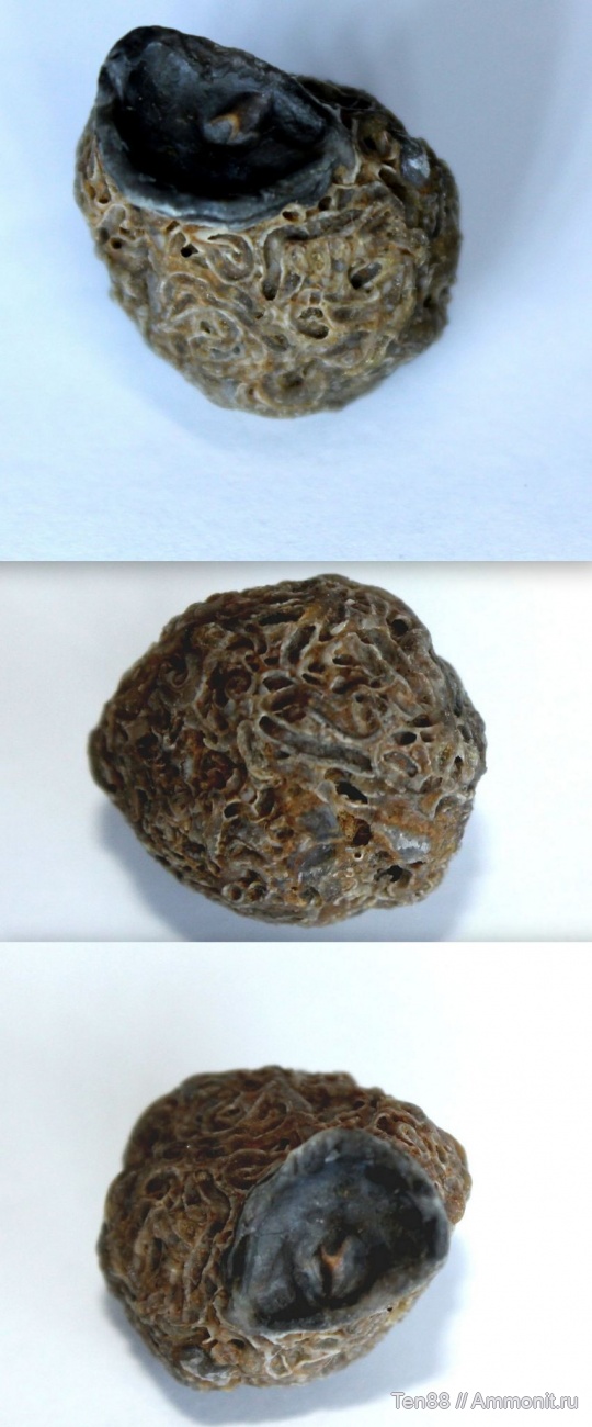 Вот такой клубочек 2х1.8см. серпулок с "короной" :) в виде двустворки. Сначала думала, что это двустворка поселилась на червячках, а потом присмотрелась, а внутри створочки есть фрагмент червячка. Так что получается, что это червяки клубились возле двустворки.