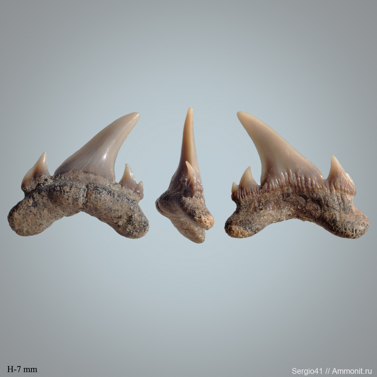 Симпатичный зубик из кампана. Понравился своими сросшимися боковыми зубцами. Думаю, но не уверен, Eostriatolamia cf. venusta.