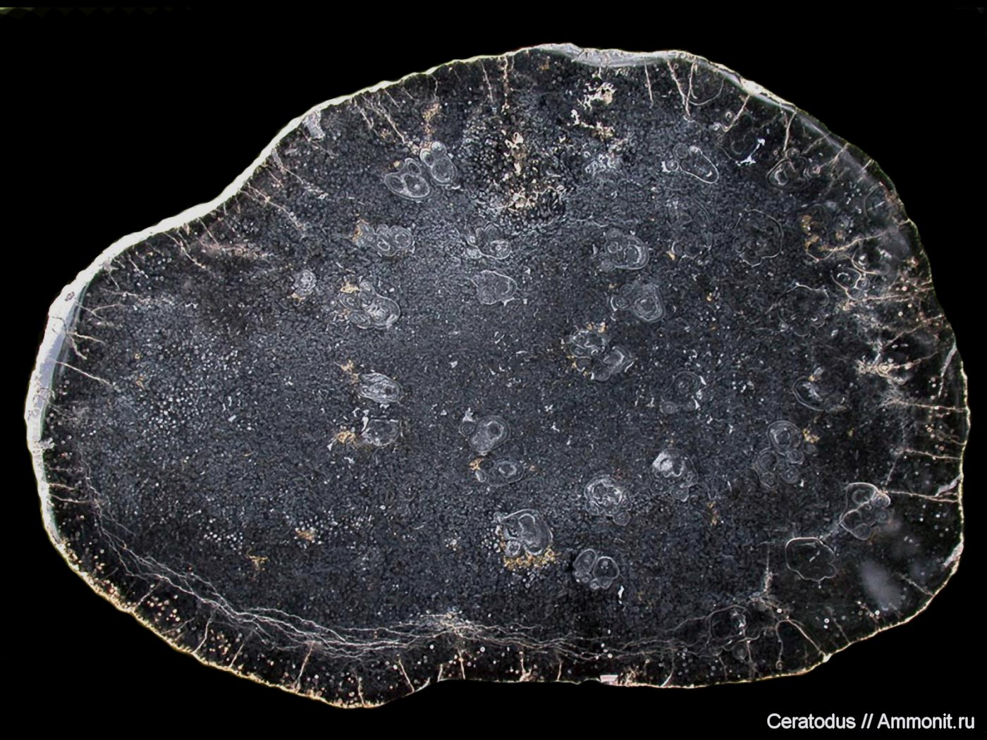 Тот же вид папоротника, что и на предыдущем фото, но имеющего происхождение из местонахождения Aspen Shale Formation, штат Вайоминг. Размер образца 25.5х17 см, толщина 1 см. Более подробно структуру древесины можно рассмотреть здесь http://www.yamadori-bonsai.info/Pu_VerstHolz1609.html (другой срез от того же самого ствола)