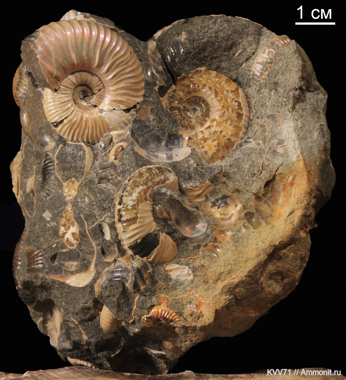 Иногда в горных ручьях края можно найти туго набитые фауной конкреции с хорошим сохранением фоссилий. В данном случае конкреция мелкая, аммониты соответственно тоже, но в крупных конкрециях можно найти крупняк с подобным сохранением. Отличие от Дагестана не только меньший размер, лучшее сохранение, но и большее разнообразие аммонитов в пределах одной конкреции.