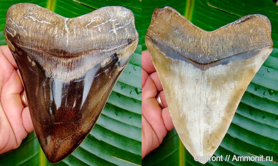 Около полугода охотился за зубом Мегалодона, просмотрено очень много форумов, аукционов, Instagram публикаций и каналов продавцов, в итоге благодаря общению с поисковиками из Америки, нашел данный зуб у очень хорошего человека и ответственного продавца. Сказать рад – не сказать ничего! Изначально ограничил себя рядом условий: размер не менее 10 см, состояние и фактура зуба по возможности приближена к музейному ( Museum Quality *), реставрация целостности зуба 0 %, ну и конечно же цена не ограничивающая мой бюджет и позволяющая быть отличной инвестицией. В итоге, спустя полугодие изысканий и отметив День Рождения, Новый Год - мною был приобретен данный «монстр» цвета лесного ореха.