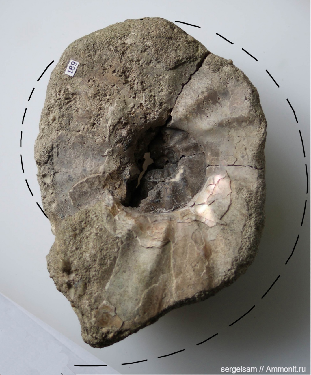Ребристый Anadesmoceras похожий на A. subbaylei Spath. Несмотря на плохую сохранность последнего оборота по этому образцу можно проследить скульптуру начиная с десятимиллиметрового диаметра раковины . До 20 мм раковина гладкая, с 20 до 50мм ребра двухраздельные с петлей на вентральной стороне, как у Arcthoplites. Свыше 50мм вторичные ребра сглаживаются.