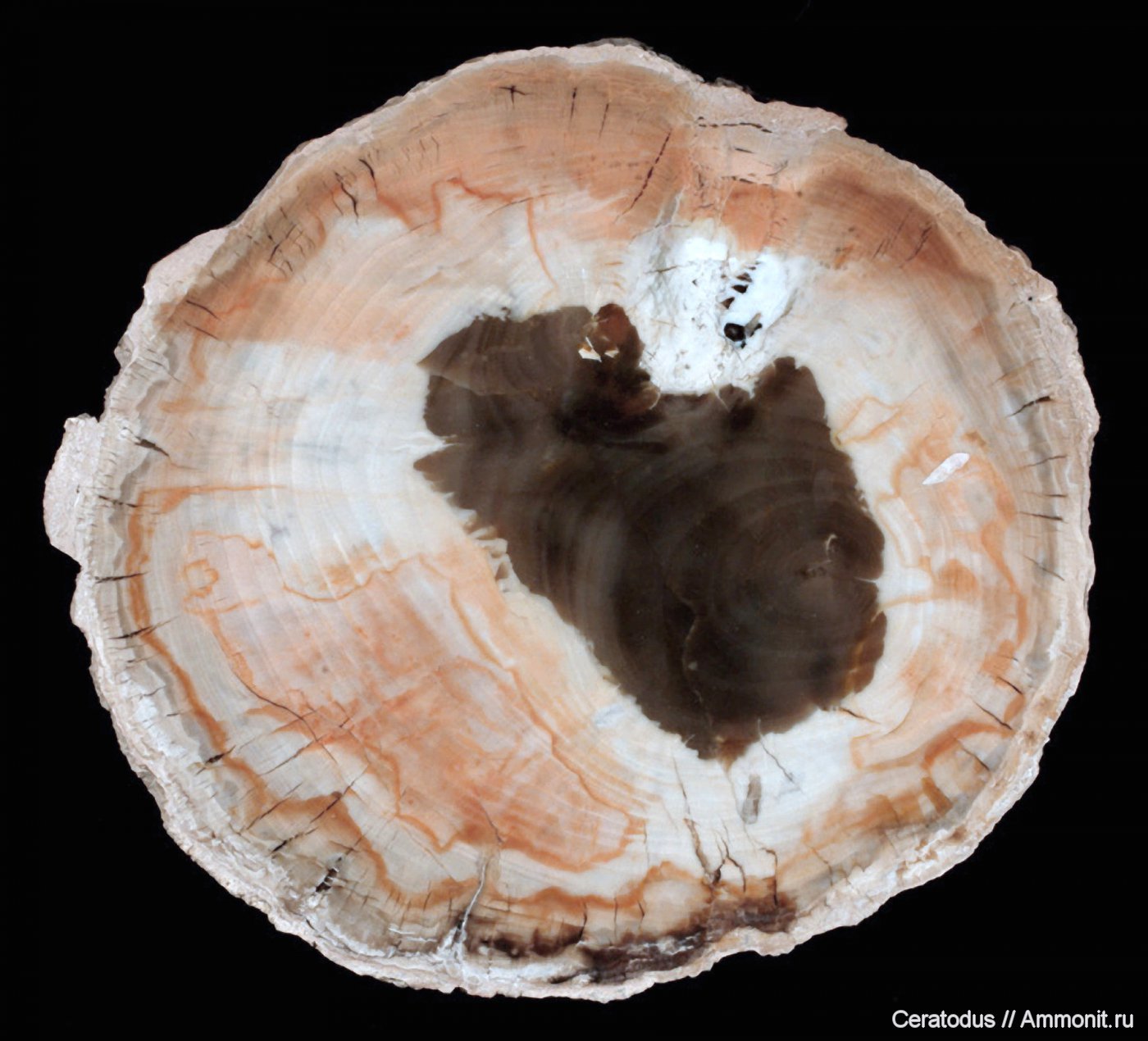Классический образец Araucarioxylon'а из формации Cerro Cuadrado, Санта Круз, Патагония. Оттуда же происходят знаменитые окаменевшие шишки, ранее описанные нашим коллегой Andreas в публикации Аргентина, Патагония, окаменелые шишки. Размер образца 10,5 x 11,5 см, толщина 8 мм.