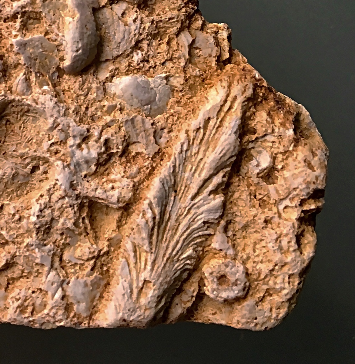 На фото фрагмент морского дна древнего моря. Возраст неизвестен, но другие находки из того же места соответствуют палеозою. Что касается отпечатков на камне, то видны членики морских лилий и фрагменты двустворок. А вот Пёрышко справа не знаю что. Буду благодарен за помощь в определении!