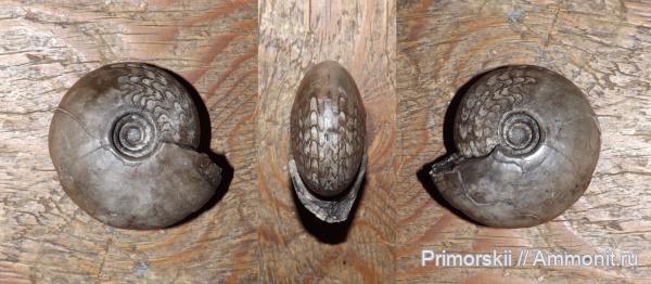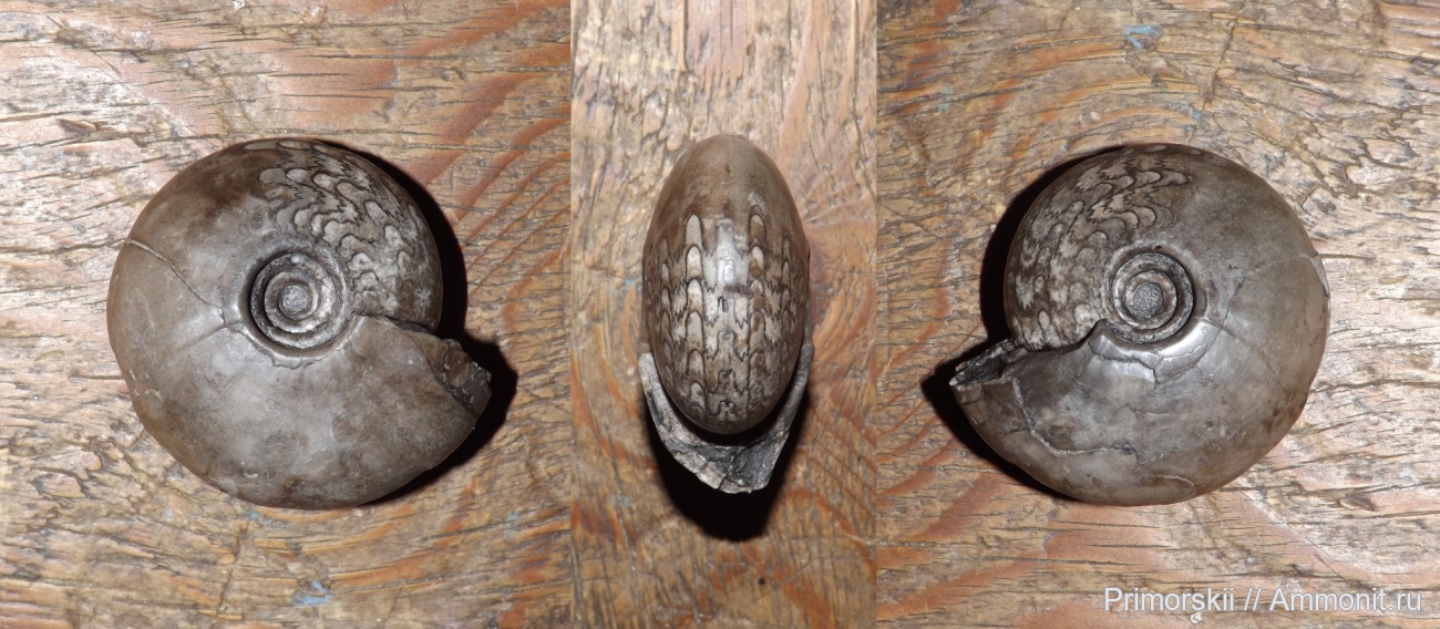 первоначальный вид аммоноидеи, с давленой жилой камерой.