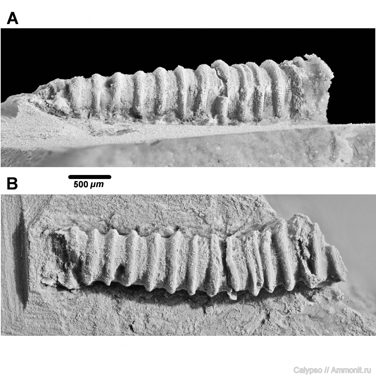 У актиноцерид и части дискосорид сифоны были интересной формы, к примеру Девонские наутилоидеи ,ядра сифона. . Но тут уж очень большое расстояние между кольцами, так что скорее это чья-то раковина, а не сифон. | ||||||