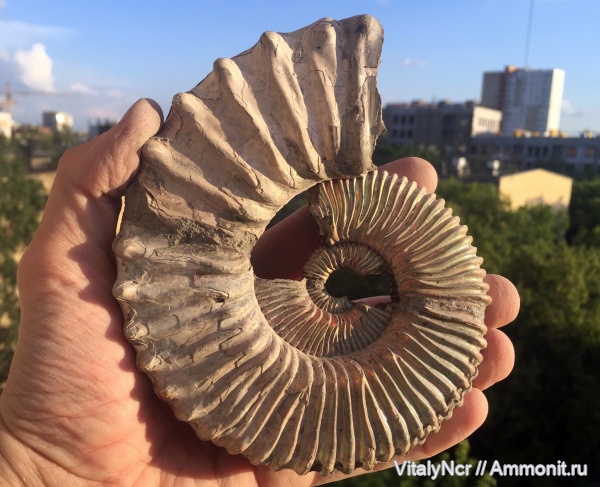 Уже рассматривая дома, понял, что искать ещё один кусочек от самой большой дыры не имело смысла, так как этот участок оборота, скорее всего, рассыпался: на внешнем обороте была его вентральная часть с остатками перегородок.