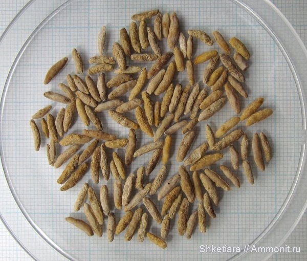 Мы стремимся добыть из глины красивых ругоз и гастропод, обрастателей разных эффектных, или хотя бы интересные таблички морских лилий. На фузулин не особо обращаем внимание. А между тем, стоит лишь немного проявить системный подход, перестать просто "снимать сливки", выхватывая из промывки самое красивое. И выясняется, что фузулины чуть ли не самые массовые находки в промывке. По количеству вполне конкурируют с колумналями. Лично мне очень показались похожими на длиннозерный рис. Тем более, что характерный коричневато-желтый оттенок похож на цвет карри.