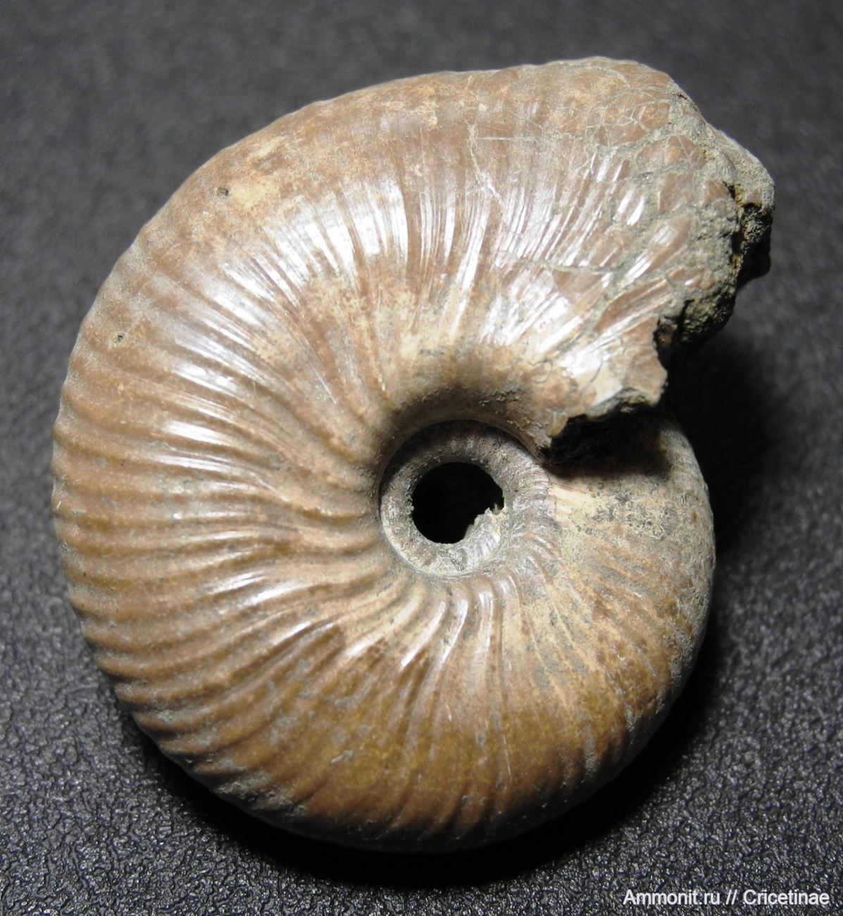Не уверен, что это прижизненное повреждение. Такой "бугор" в конце вентра ближе к устью я видел у многих фуниферитесов, у которых сохранилась жилая камера. Мне кажется, что это особенность сохрана. | ||||||