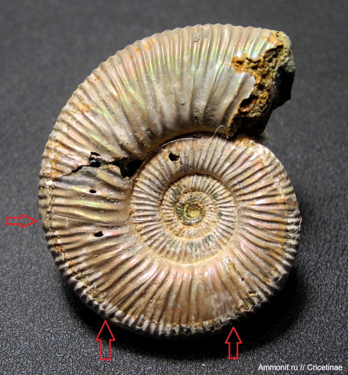 Возможно. Но параболы всё же обычно примерно одинаковые на аммоните, здесь же отмеченные участки раковины имеют разные аномалии. Если я не прав, то прошу пояснить. | ||||||