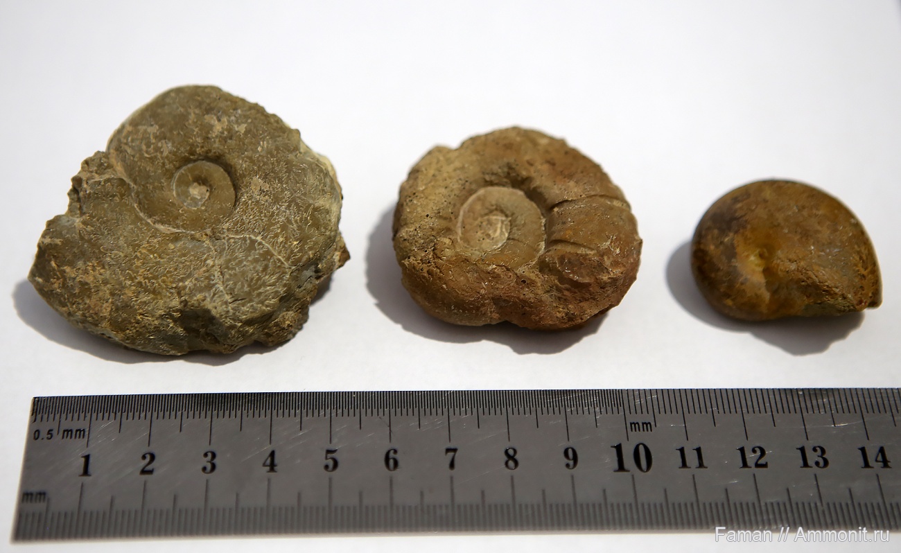Привяжите, пожалуйста, к месту находки. Они откуда? Если они из известняков Верхоречья, то это не валанжин. Правый - из семейства Phylloceratidae. | ||||||
