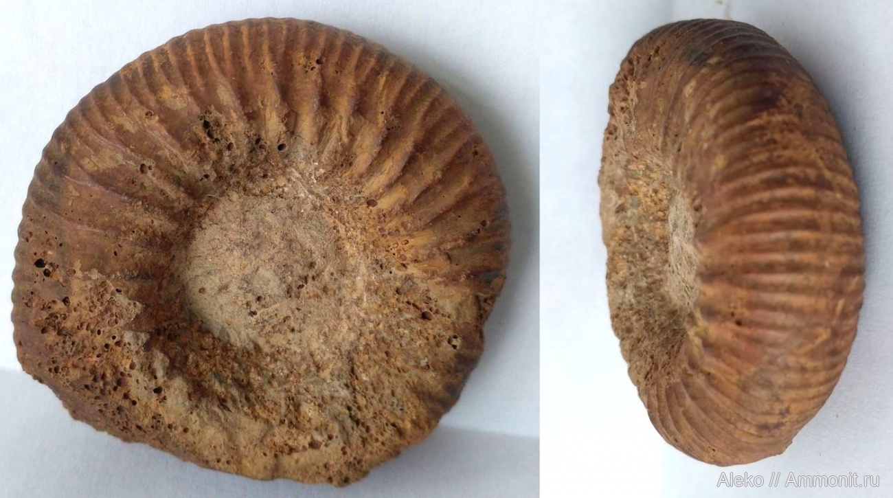 Фото не очень хорошо передает ребристость, но ребра очень тонкие для группы шоффатий/гроссоуврий и высокие, подобная ребристость свойственна представителям келловейских рейнекиид из родов Collotia и Rehmannia, но у моего экземпляра ребра на вентре, в отличие от них, не прерываются и даже не понижаются.