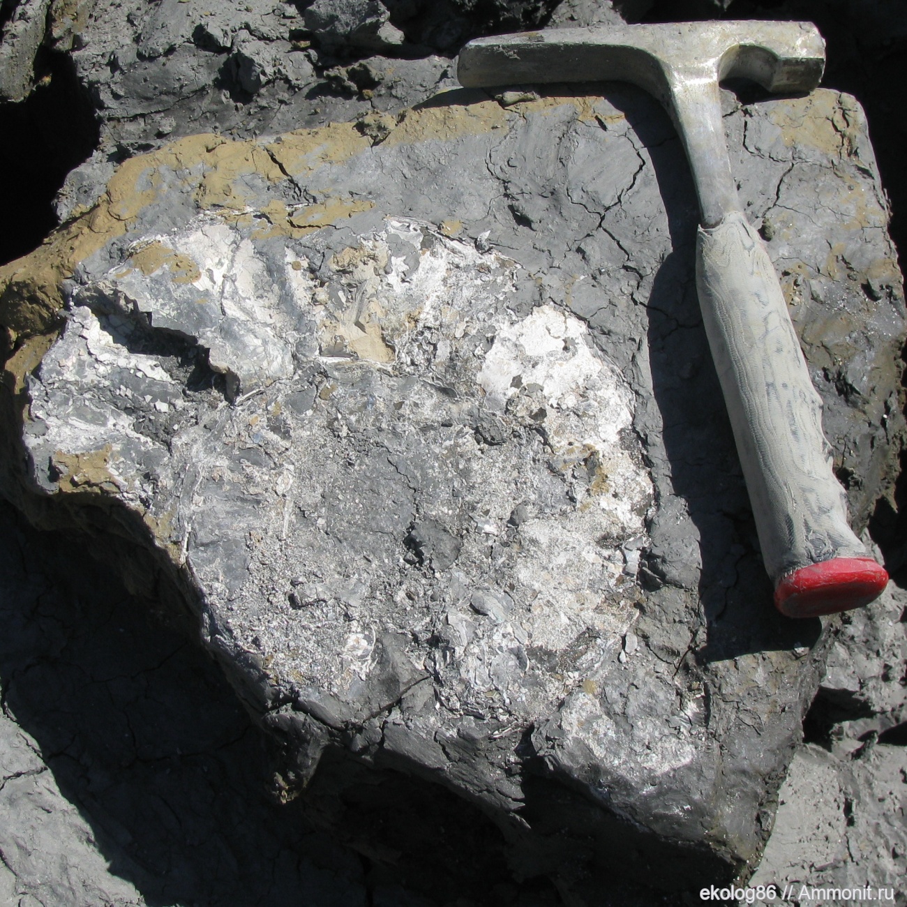 Я думаю, что это фото можно и удалить. Уж очень плохо тут аммонит сохранился. В Михайлове, в низах зоны Coronatum, есть целый горизонт с таками аммонитами, это макроконхи Binatisphinctes. Вот к примеру Макроконх Binatisphinctes sp. из Михайлова и вот Глиняный аммонит. Они все обычно глиняные, так что их не взять целиком, хотя крайне редко бывают и пиритовые. | ||||||