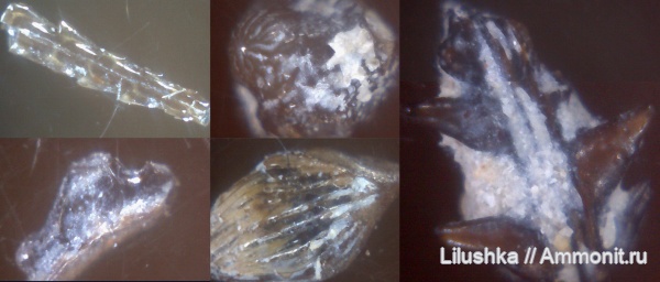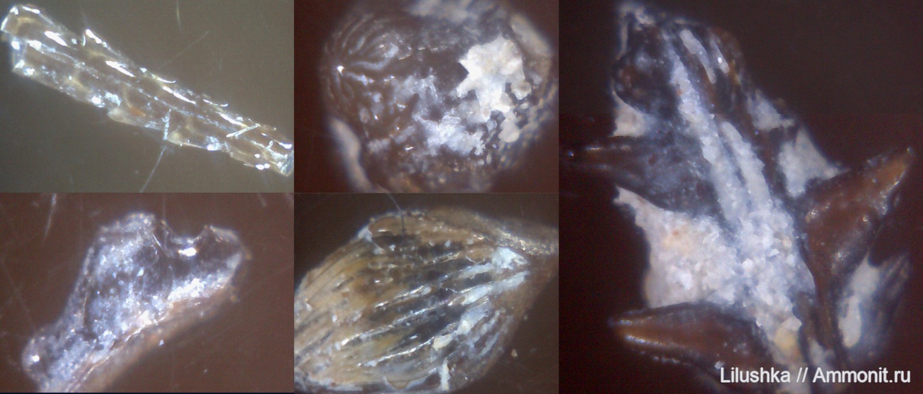 С выезда от 28.07.2019. Кусок шипа, зубы, чешуя. Всё размером до 2 мм.