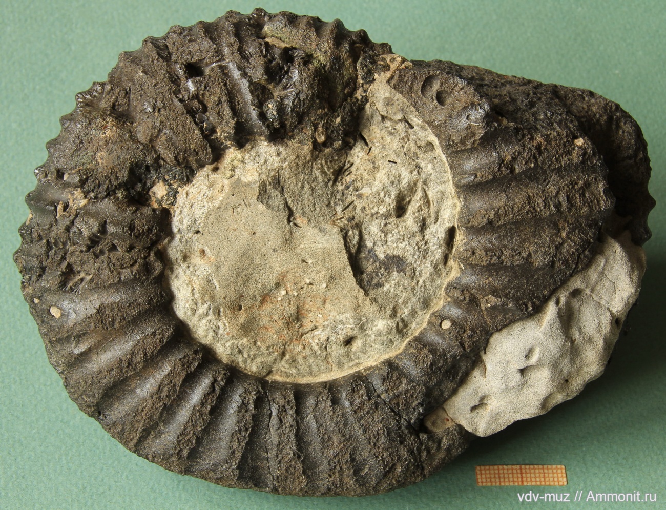 что-то ребристость для эпивиргатита слишком грубая: ребра очень широкие и редкие; к тому же и пупок, мне кажется, широковат. Больше похоже не Dorsoplanites, но вот незадача: в Кашпире в основном верхняя волга, а зона panderi приурочена к глинам с горючим сланцем, здесь же порода в пупке типично верхневолжская. | ||||||