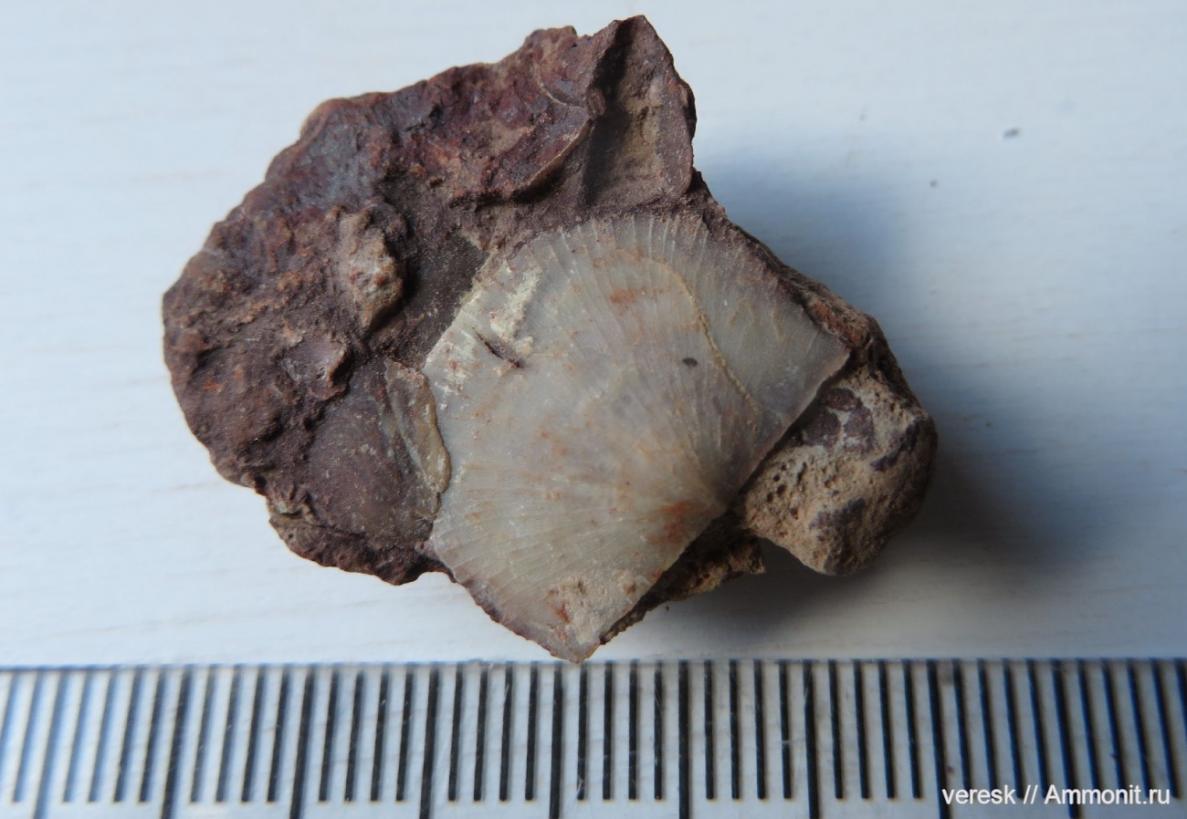Уникальная раковина для Ильменсткого глинта, а судя по породу это красноцветные бургеские слои. Больше похожа на какой-то ордовикский вид. Возможно это Monelelasma, но не уверен. Я таких на Ильменском глинте не встречал. Поздравляю с редкой находкой. | ||||||