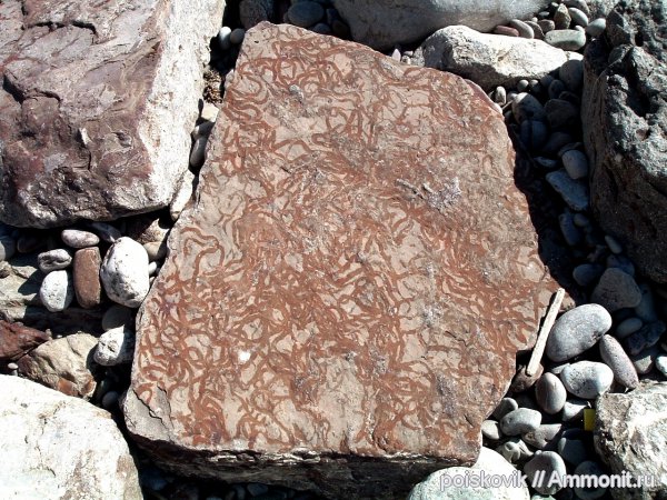 Следы червей на плитах песчанника в районе "Золотого пляжа" Балаклавы.