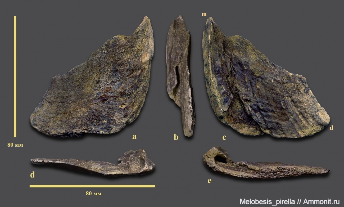 В августе 2019, при работе на выходах нижнего кампана в Пензенской области попалась интересная чёрная пластина ( Фото 1 , Фото 2), отдалённо напоминавшая фосфатизированную раковину устрицы Lopha. Впоследствии, при препарировании, выяснилось, что на «раковине» имеются участки (полоски и точки) схожие по строению с триторами химер, да и сама структура пластины напоминала кость. Обратился за помощью к Яркову А.А., который определил данную окаменелость как пластину химеры Amylodon, основываясь на статье №1 из списка литературы. В дальнейшем, при поиске изображений для сравнения натолкнулся на статью №2 из списка литературы, в которой описывается похожая пластина химеры из местонахождения Широкий Карамыш Саратовской области.