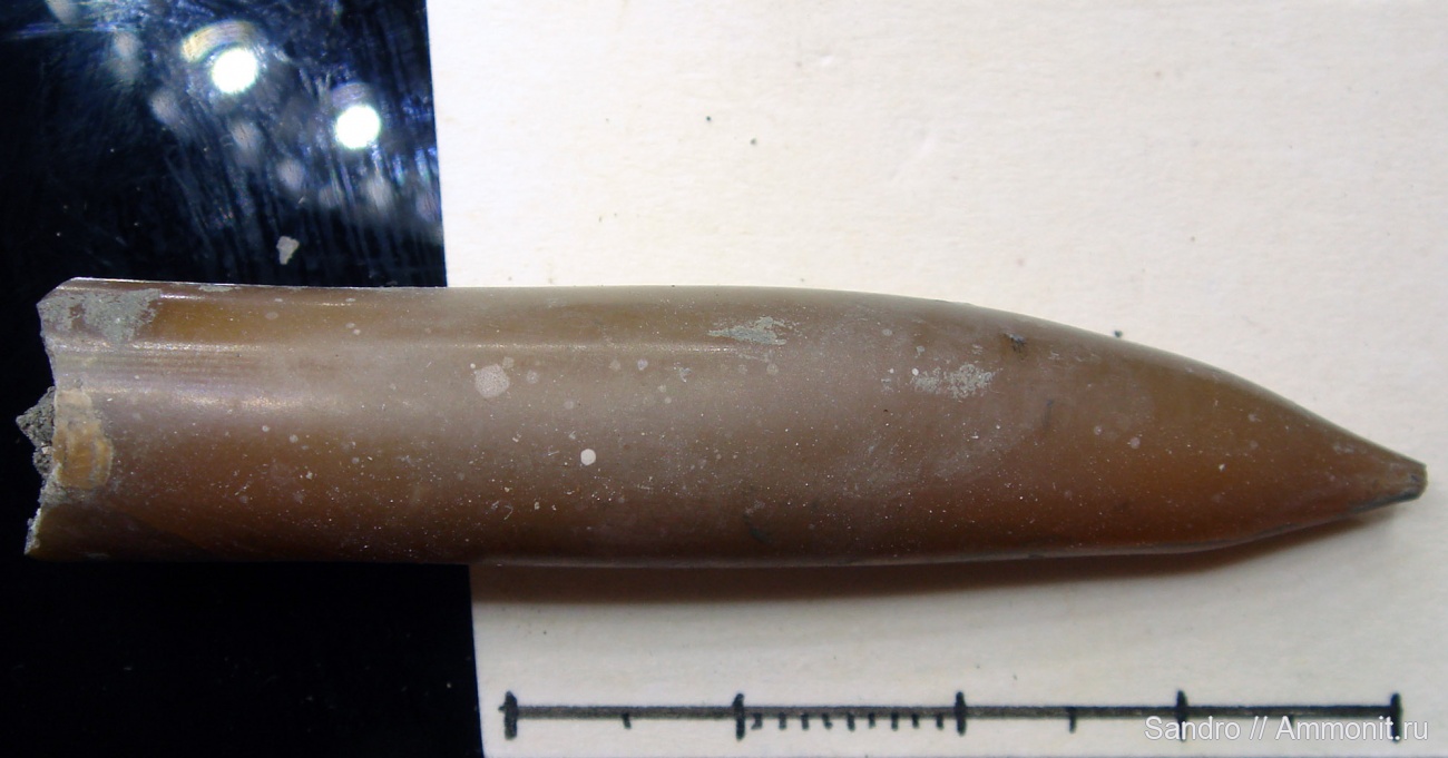 Довольно интересной формы белемнит - с горбинкой. | ||||||