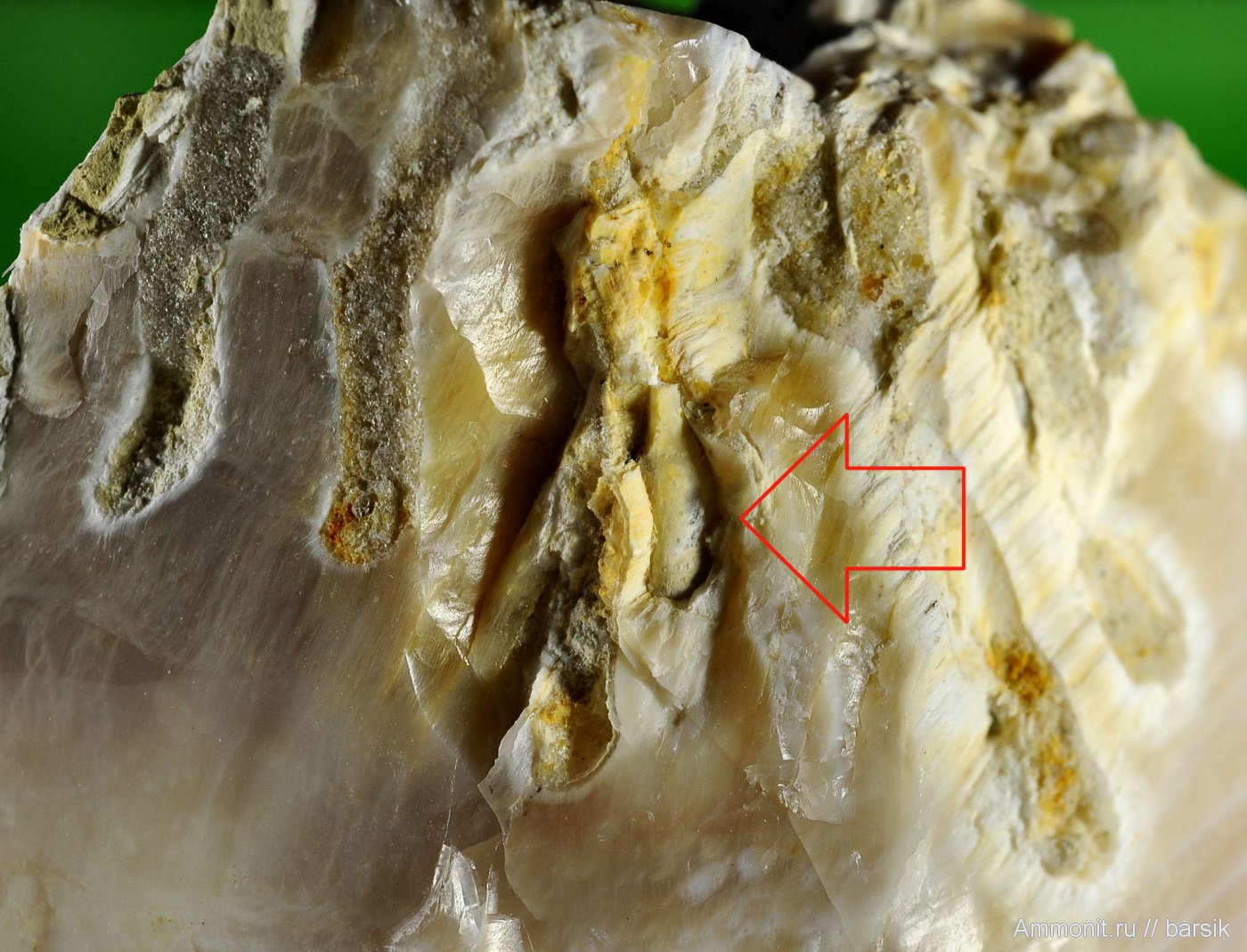 Сложно сказать, это может быть просто отливка хода, может быть замещение выстилки халцедоном.