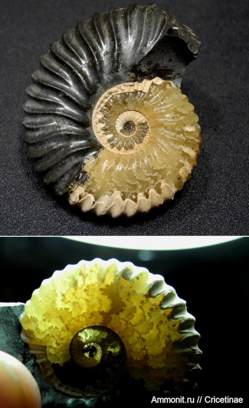 Размер 4,9 см. Внизу кальцитовый фрагмокон на просвет. Приобретён у уважаемого Олега (Demian).
