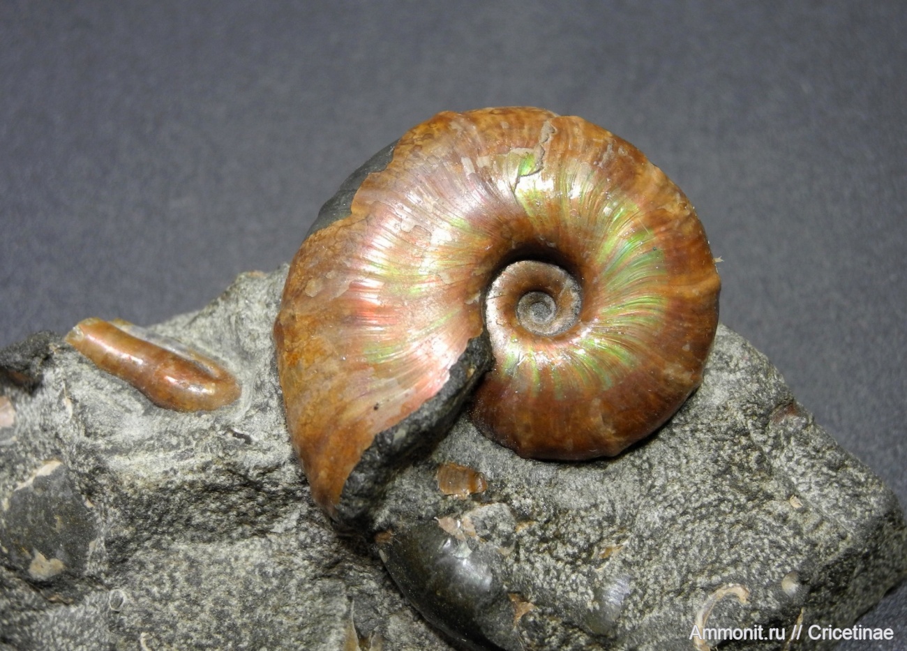 Аммонит Zuercherella 4,2 см с перламутром и малыш Ptychoceras 1,7 см. Образец приобретён на Гемме у уважаемого Андрея.