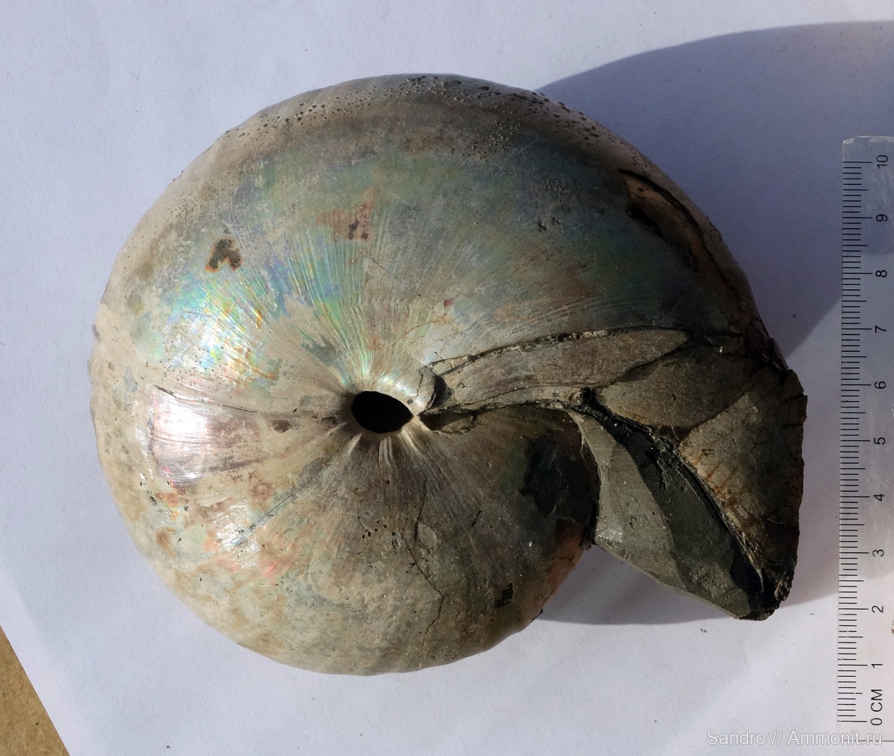 Хороший и интересный аммонит, сочетающий в себе признаки сразу трёх видов. | ||||||