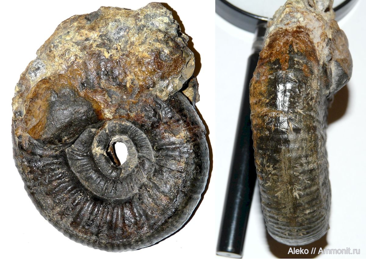 Может переотложенный? Тут конечно ранние обороты не очень хорошо видно, но по-моему у алигатицераса сильно наклонённые рёбра должны быть? | ||||||