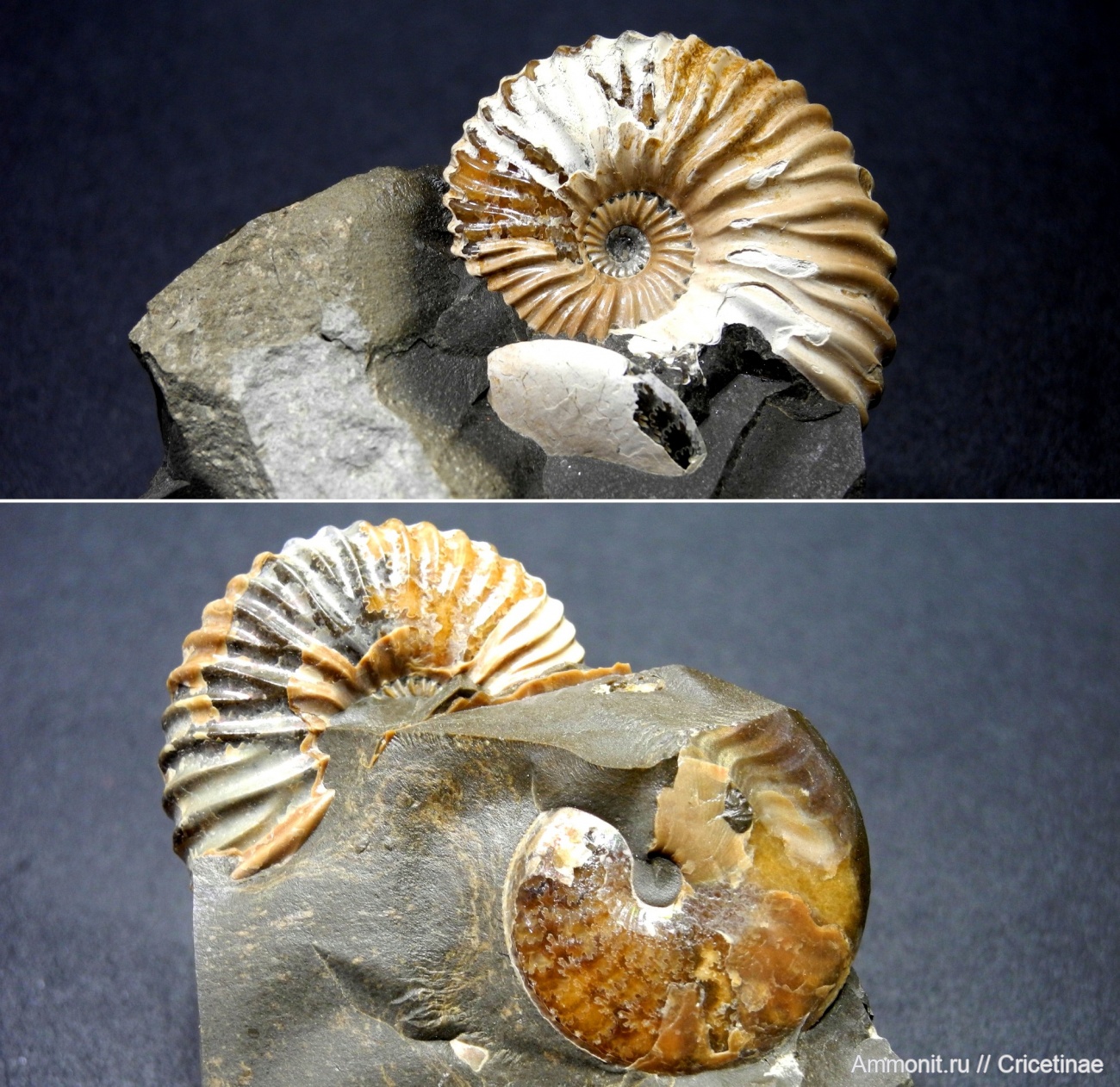 Конкреция с двумя аммонитами. Размер Deshayesites 3,9 см. Размер Aconeceras 3,2 см. Приобретёна у уважаемого Олега (Demian).