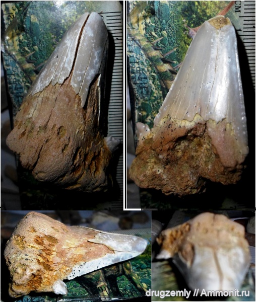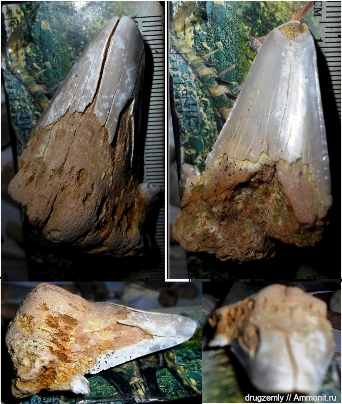 возможно это Otodus auriculatus. найден в светло- желто-зеленых песках в слое с гальками. Думаю это переотложеный с эоцена зуб. длина 5-6 см. я такой толщины еще не находил.