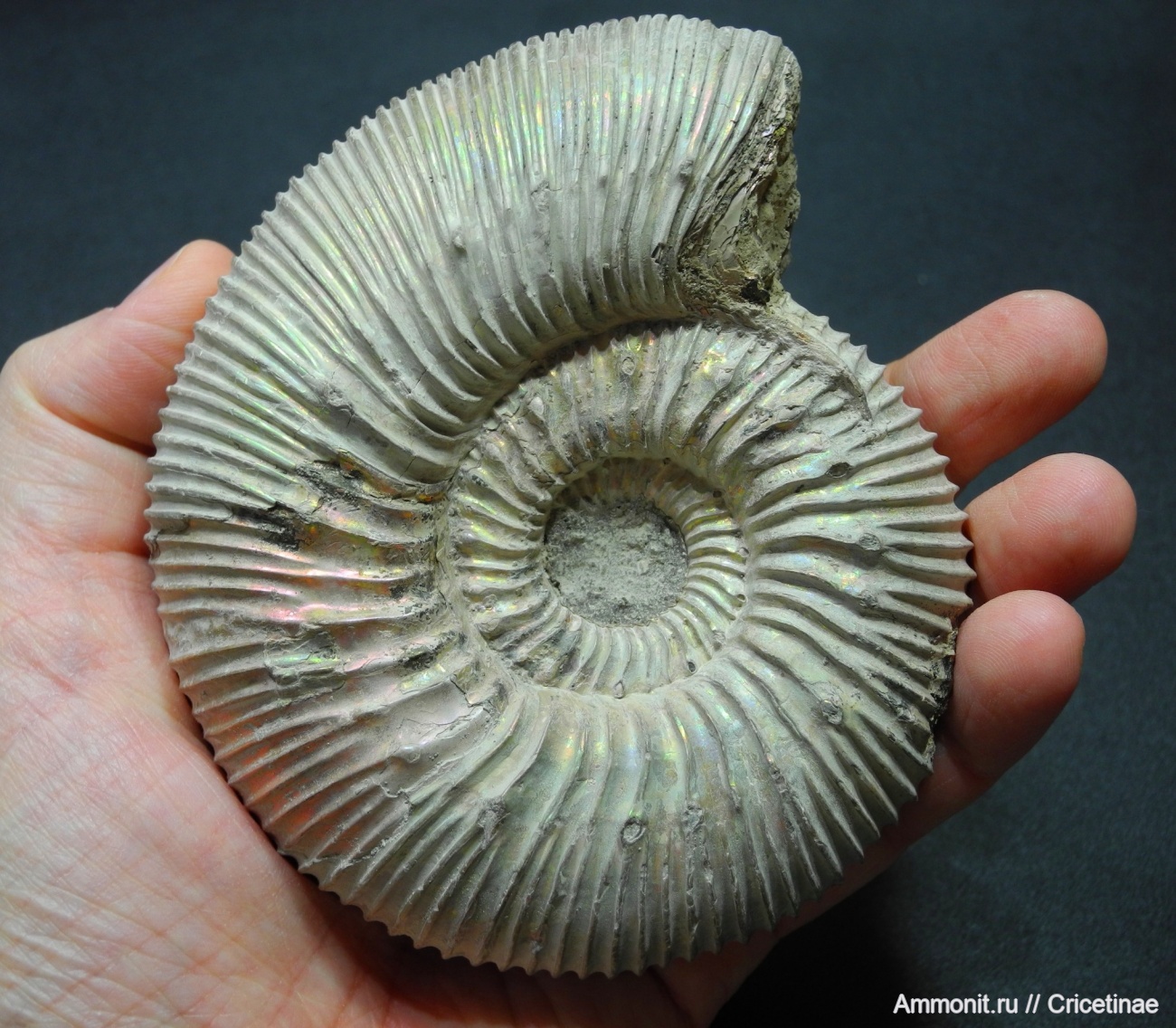 Получен в обмен от уважаемого Виталия (VitalyNcr). Размер 11,5 см. У аммонита имеется страно деформированное или залеченное ребро, на дополнительном фото с вентра это хорошо видно