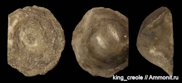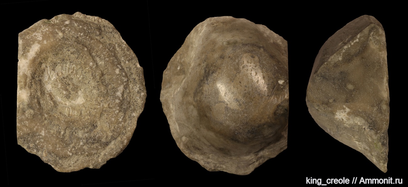 Диаметр мшанки 65мм. Плоский срез - результат строительной обработки плитняка. Кроме очистки от большей части породы, я немного отшлифовал верхушку (среднее фото) и плоский срез (справа), чтобы проявилась структура зооидов.