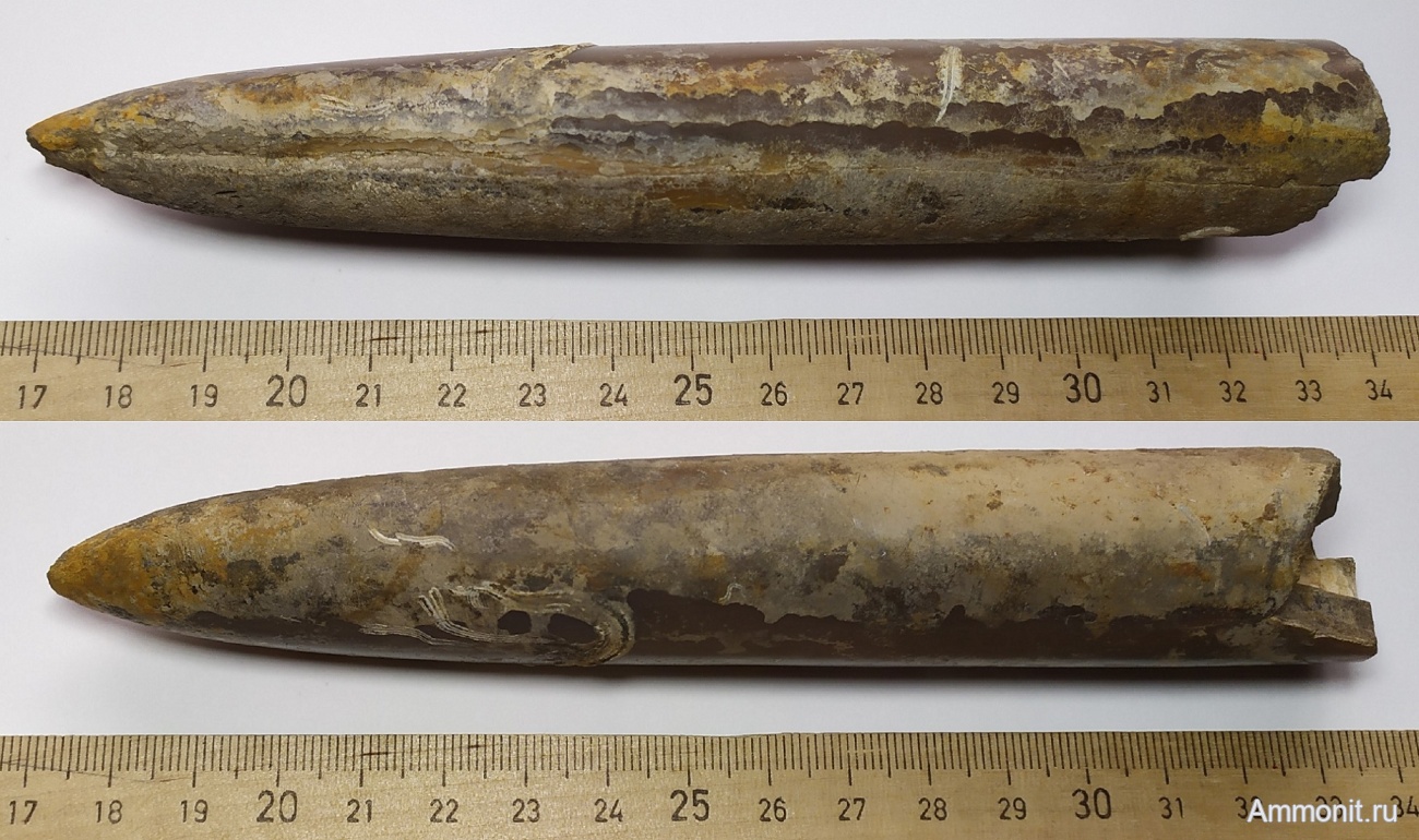 Крупный белемнит Cylindroteuthis с обрастателем - Serpula из карьера Спартак.