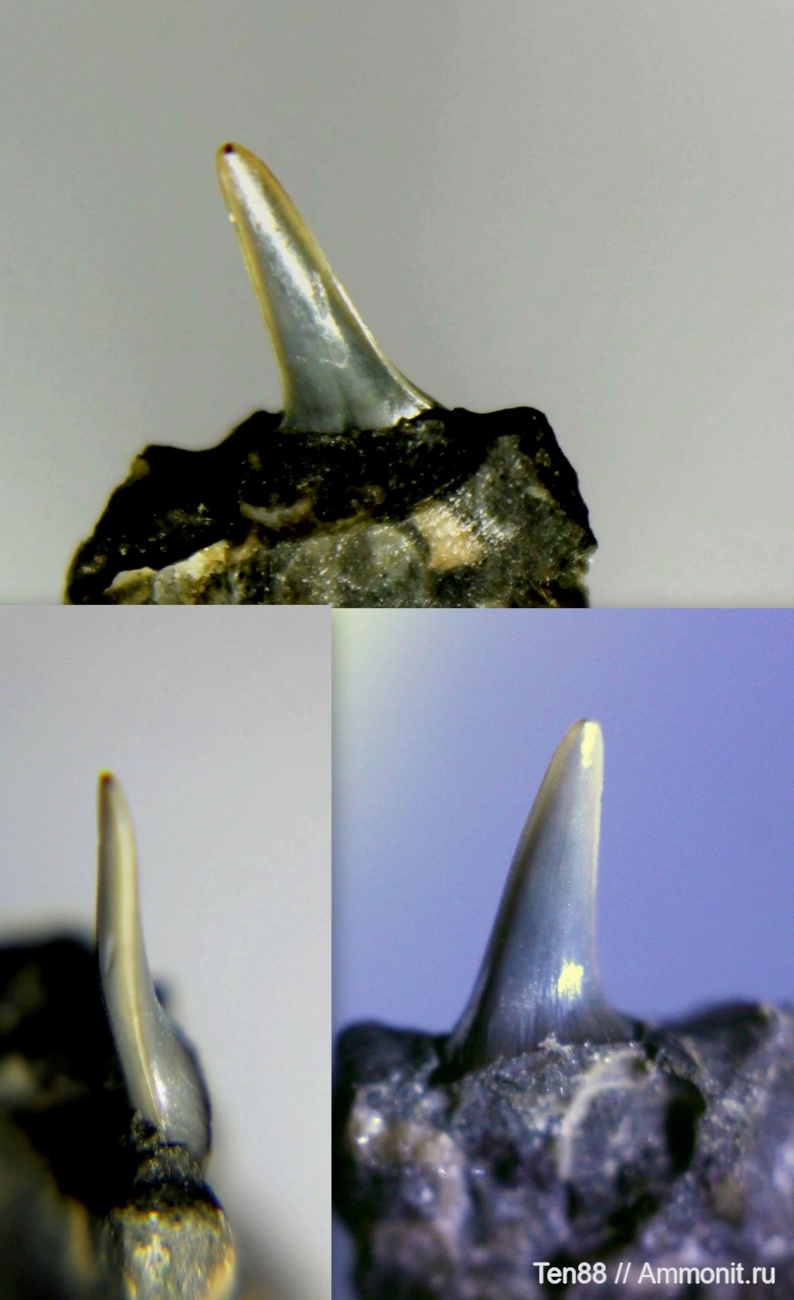 Хорошая для тех мест находка. Однако сомневаюсь что это Mitsukurinidae, думаю при жизни дополнительные зубчику всё-таки были. Какой то ламноид типа песчаной акулы скорее всего. | ||||||