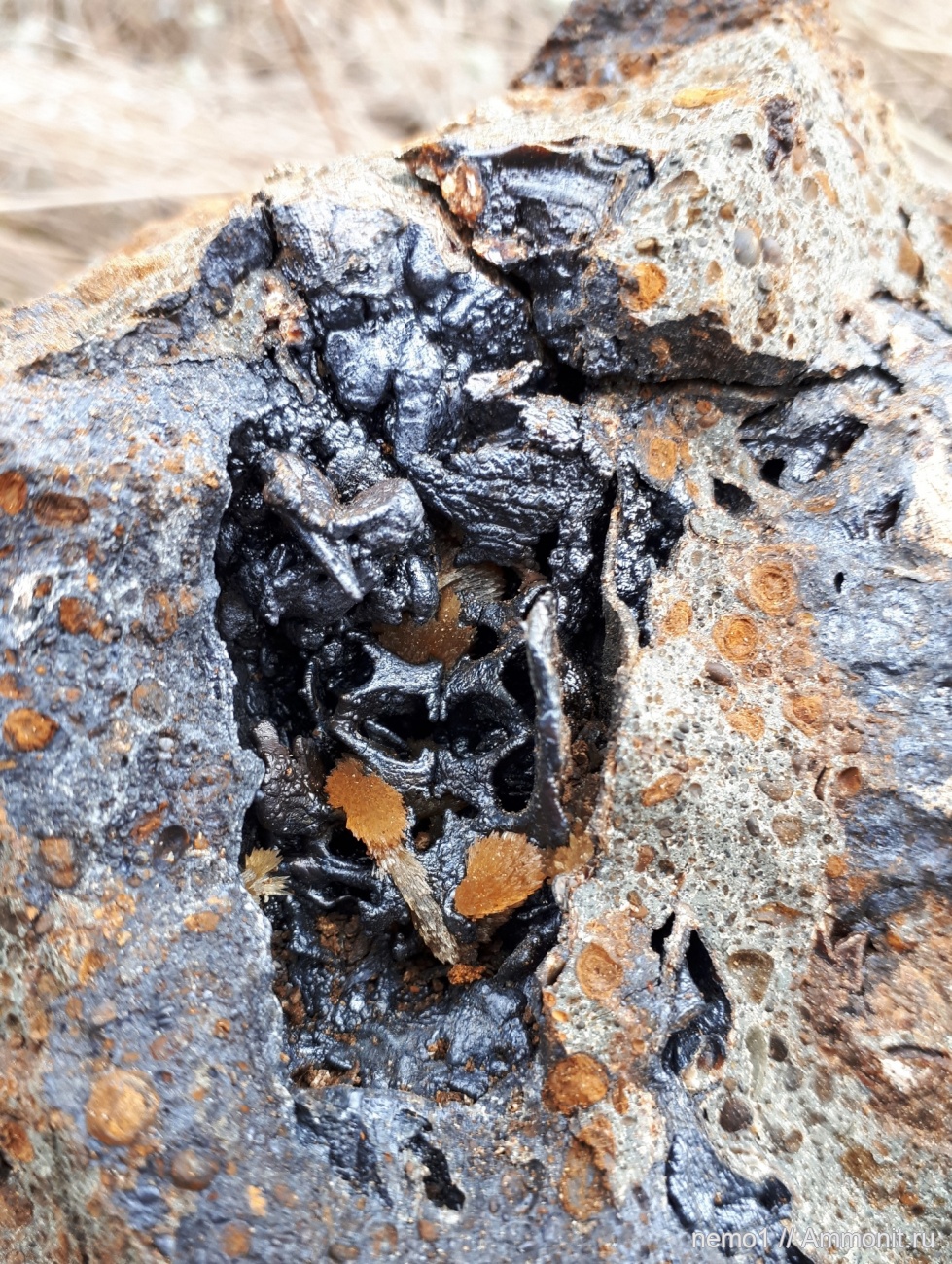 Сегодня попался вот такой необычный образец. В полости двустворчатой раковины - внутренний "каркас" какого-то ракообразного - а изнутри проросли кустики барита. Сам хитиновый панцирь с видневшимися правыми ножками сохранить не удалось, он прикипел к противоположной стенке и отвалился вместе с ней.