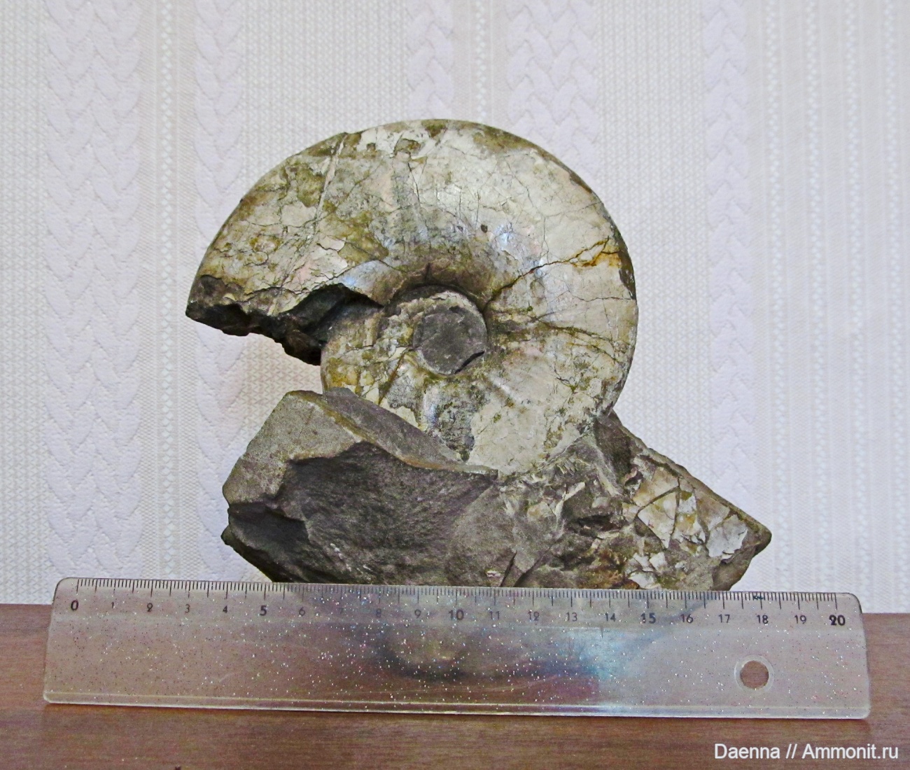 Образец из геологических сборов конца 1980-х гг., Pachydiscus flexuosus Matsumoto, 1979, найден в окрестностях с. Синегорск на Южном Сахалине (верховья р. Сусуи).
