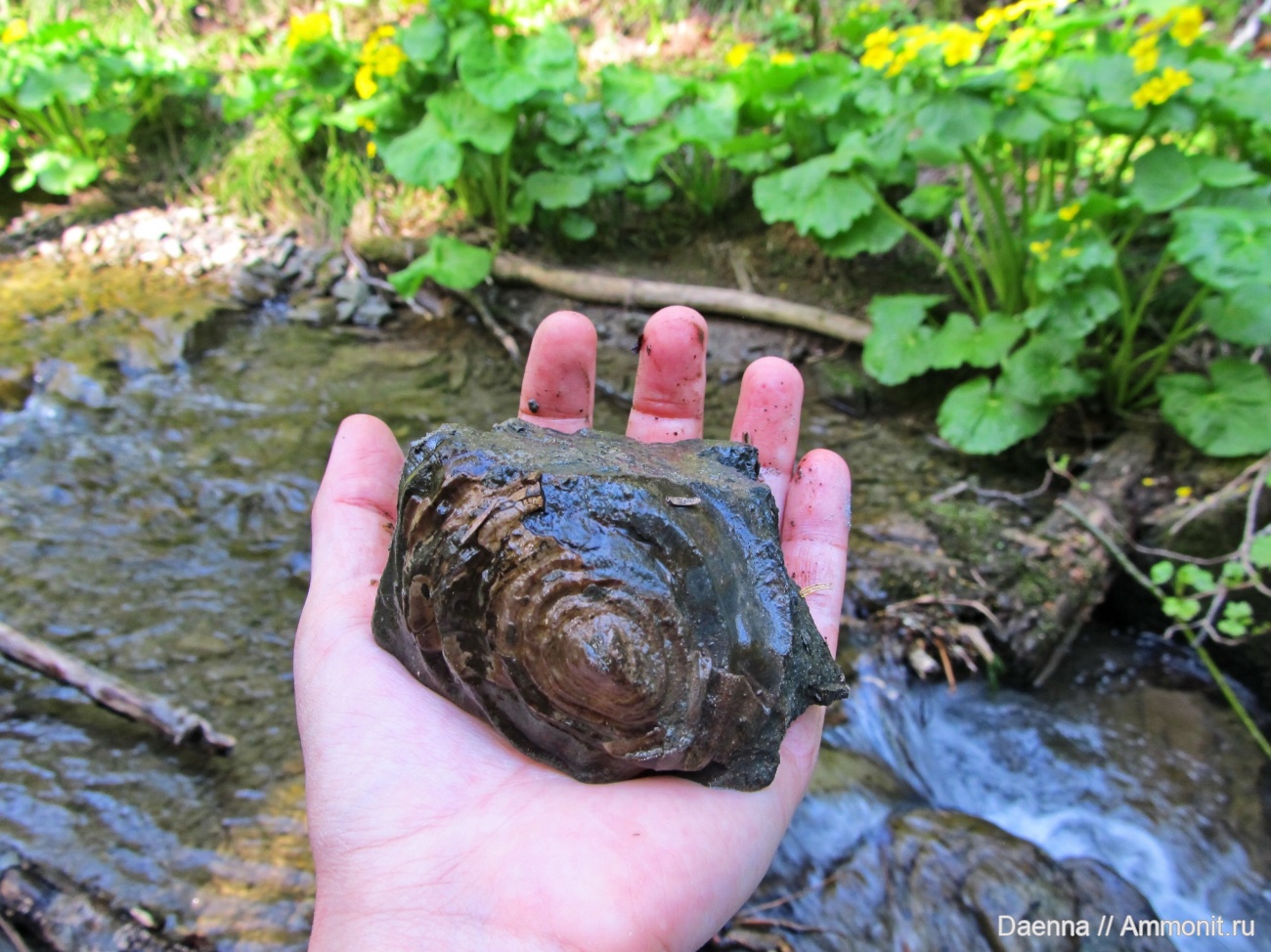 Найдено 03 июня 2018 г. в русле ручья Больничного, на окраине с. Синегорск. Версия: колпачковидная гастропода Brunonia.