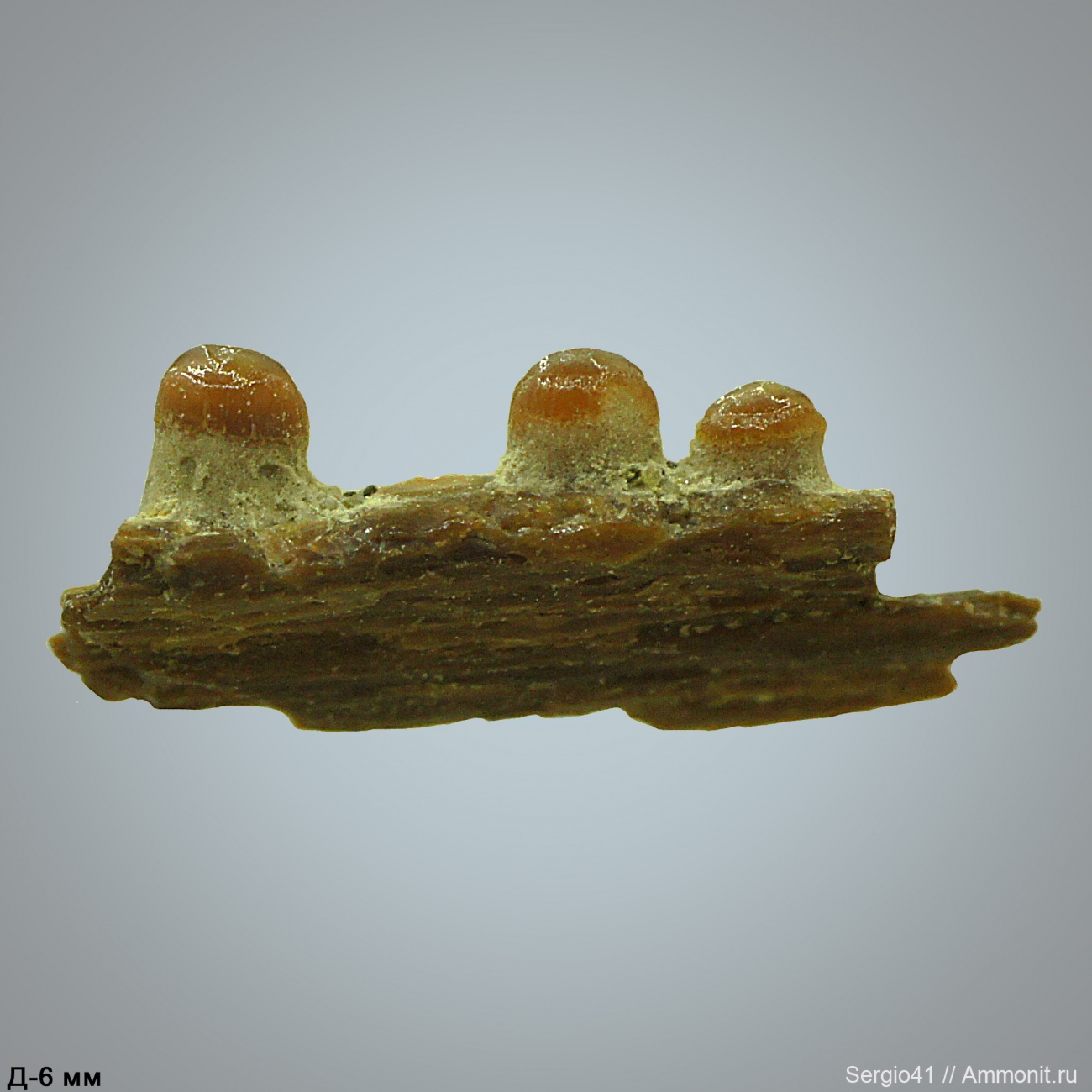 Недавно ds3944 выложил замечательную находку фрагмента челюсти Pycnodus sp., замурованную в породу. Я выкладываю тоже кусочек челюсти (как мне кажется Pycnodontiformes), которая влезет целиком на один из зубов находки ds3944.Ну не выросла рыбка :-)