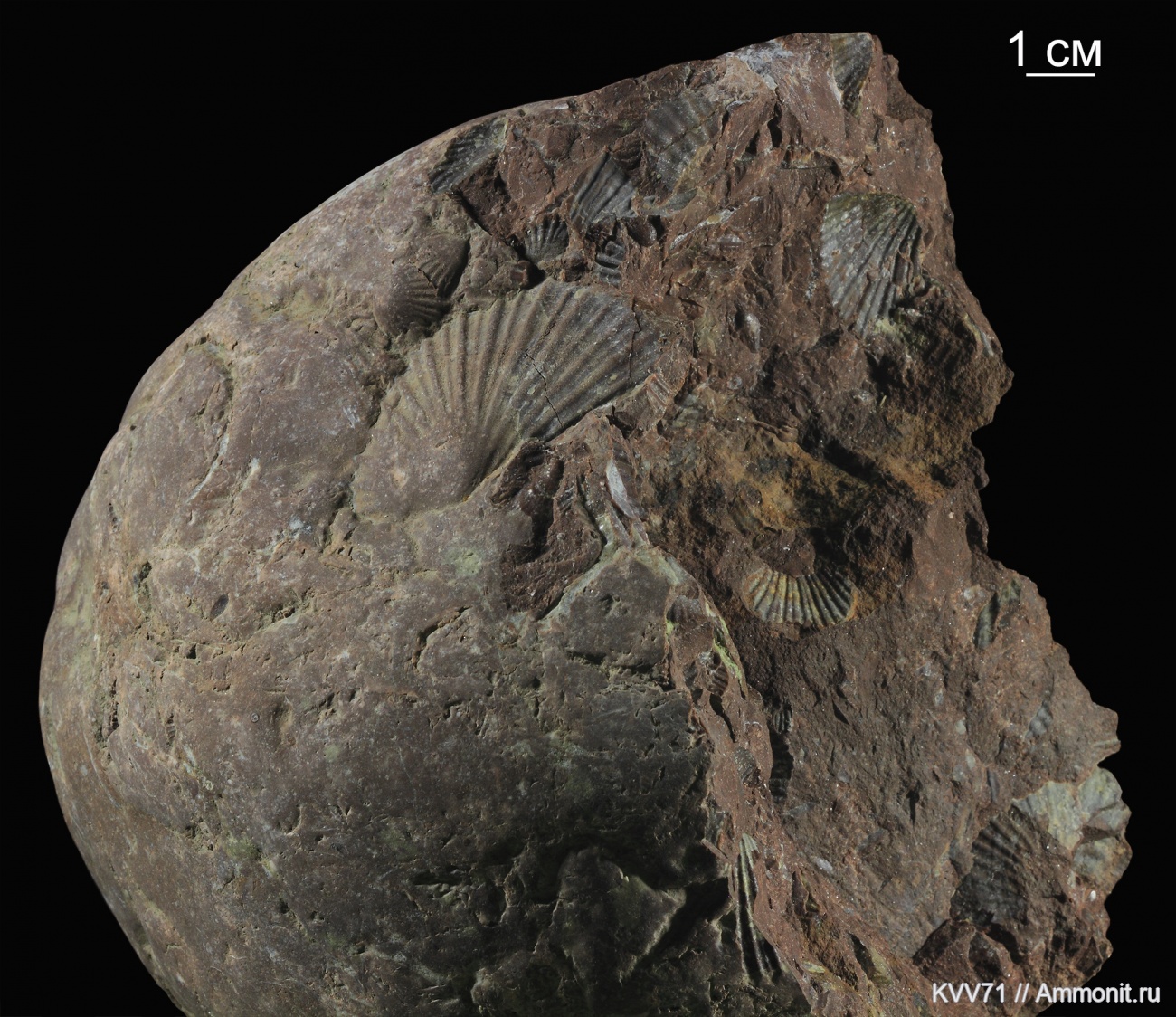 Пелициподы Monotis caucasica в куске окатанной породы с русла р. Белая, снесенного с верховий, видимо притока Белой р. Сахрай.