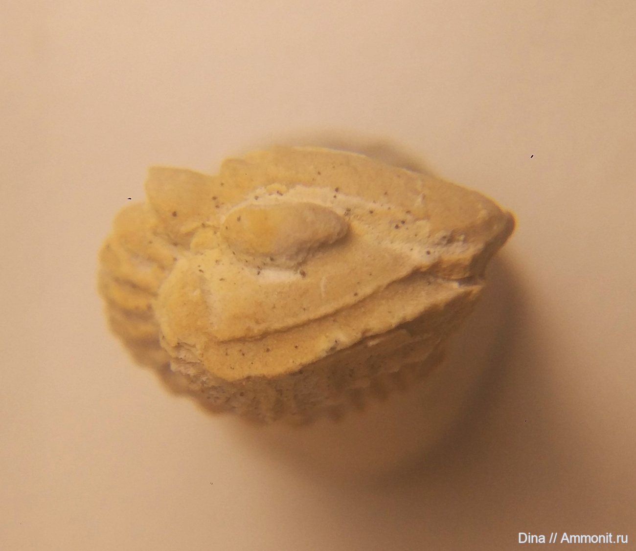 Ditomopyge mosquensis, в ширину примерно 12 мм. Найден в куске вместе с несколькими пигидиями и отпечатками (всего их там 8).