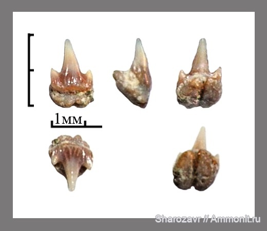 Не очень подходит. У Scyliorhinus средняя часть коронки возле корня имеет углубление а не выпуклость, как здесь. | ||||||