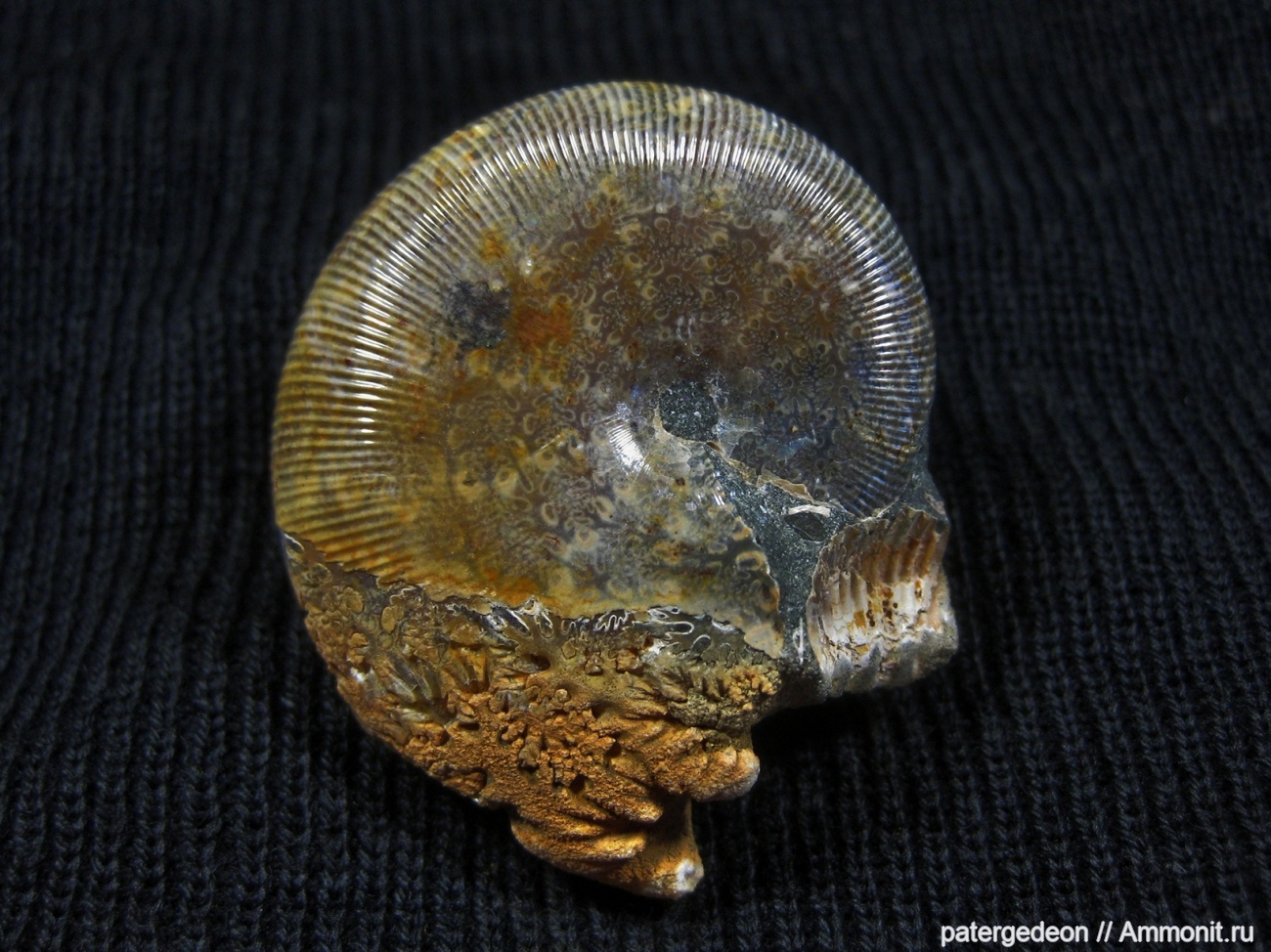 Классный. Это тот случай, когда размытая часть раковины не портит, а украшает аммонит.))) | ||||||