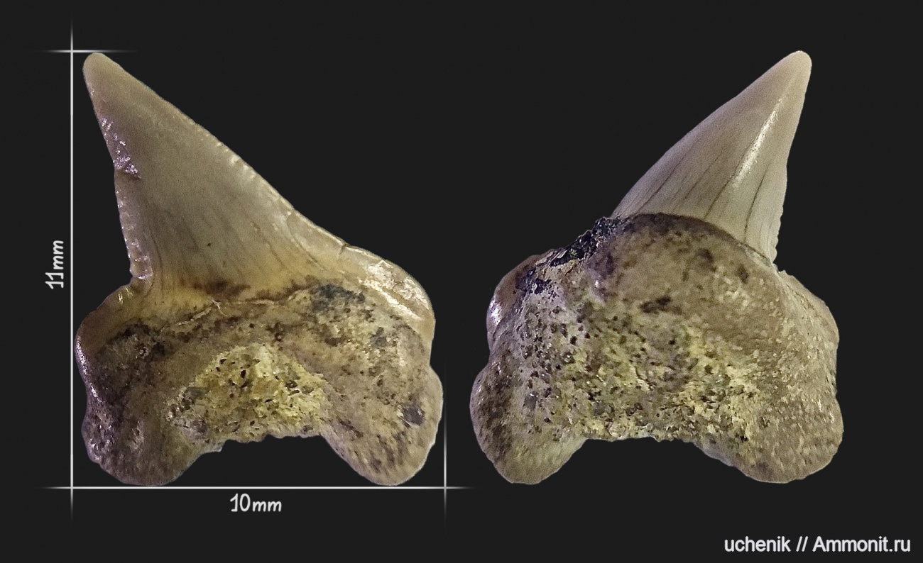Когда копался в запасах из Варавино, наткнулся на зуб "с зазубренками", вспомнив, что нечто подобное выкладывал в начале своего пути палеонтолога, обнаружил, что подобный зуб отнесли к семейству анакорацидов. Тогда я не стал копать глубже, но сейчас любопытство взяло верх. Прошерстив сайт, наткнулся на дефицит литературы и решил обратится к пользователям, активно комментирующим фотографии зубов, принадлежащих к вышеупомянутому семейству. Однако глубокоуважаемые мною старожилы этого сайта пришли к разным выводам. VladimirL посчитал, что это "передний зуб Palaeoanacorax.Только более прогрессивный в эволюционном плане, с зазубренностью", а Ukrfossilraptor11, что это зуб Squalicorax sp., поэтому считаю будет корректней выложить этот зуб и объявить дискуссию открытой.